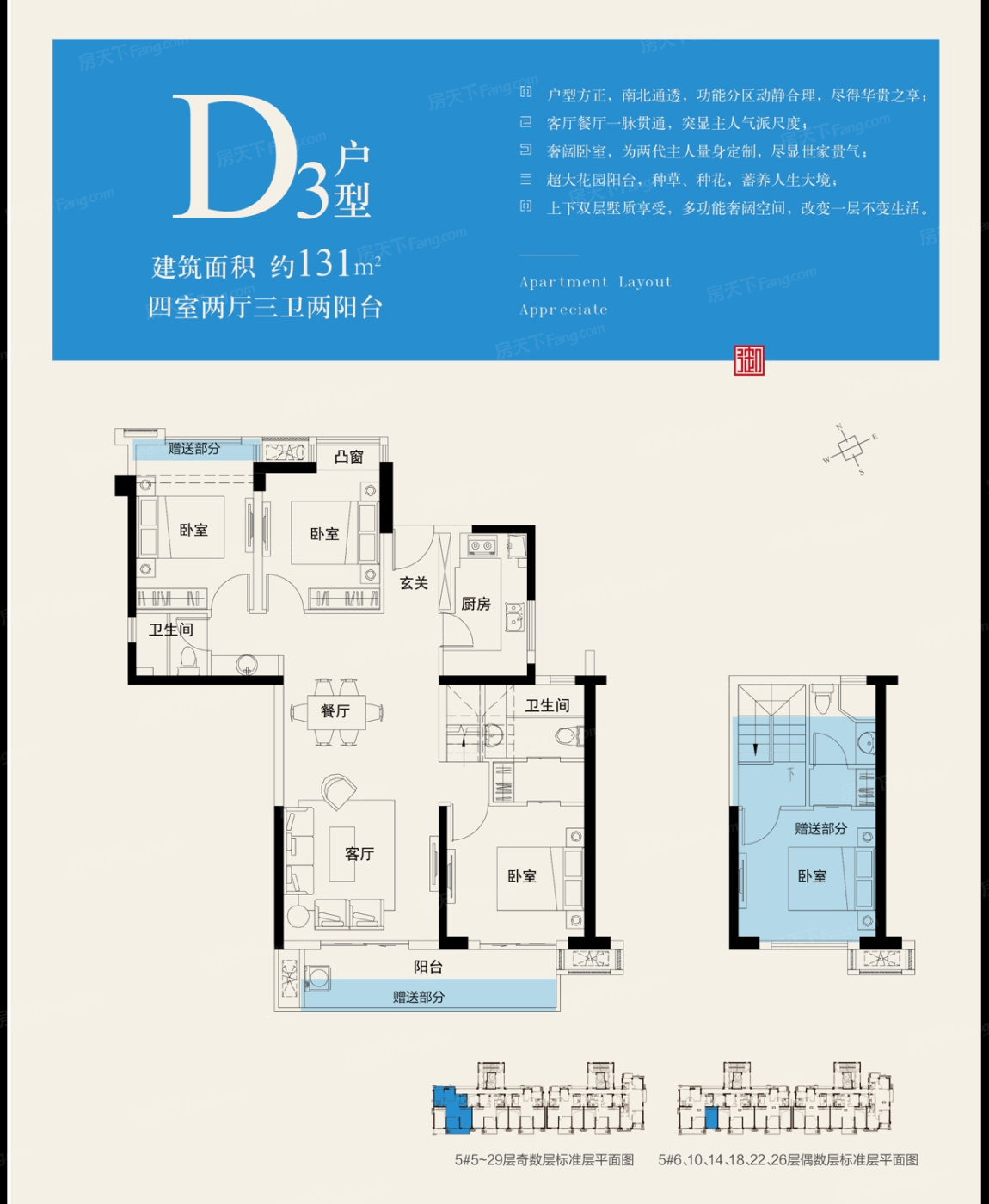 4室2厅3卫中辉紫御府 复式户型·建面/131㎡